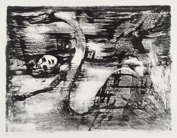 Charles Quest created this compelling print, titled "Girl in Bed," using woodcut techniques. The bold contrast between black and white is achieved by carving away parts of a wood block, leaving the raised areas to receive ink and transfer the image onto paper. This method, while capable of great detail, tends to produce graphic, high-contrast results. Notice how Quest uses this to full effect, creating stark angular shapes that depict the figure and the surrounding bedclothes. The texture of the wood itself becomes part of the image. Woodcut, as a medium, has long associations with both fine art and more vernacular applications, such as posters and printed ephemera. The labor-intensive process, and potential for multiple impressions, makes it an interesting case study in the relationship between art, work, and consumption. Quest's decision to use this medium underscores how the act of making is deeply connected to the artwork's meaning and its wider social and cultural context.