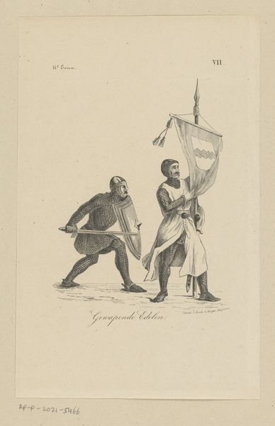 Curator: This is James McNeill Whistler's tiny etching, "An Officer Attacked by Brigands." It's economical, a mere 6.7 by 10 centimeters. Editor: There's a primal feel to it, all shadows and suggestion. It’s like a half-remembered nightmare, the kind you wake from unsure of what menaced you. Curator: The brigands, or shadows themselves? Whistler’s use of drypoint creates that inky darkness, obscuring details, heightening drama. He's playing with archetypes here. Editor: Precisely. The officer, the victim, is instantly recognizable by his attire, evoking a sense of powerlessness against unseen threats. These figures loom—bandits or demons, it hardly matters. Fear has many masks. Curator: It’s a stark reminder that narratives of attack and vulnerability are, unfortunately, timeless. Perhaps Whistler, a man who loved to provoke, wanted us to feel that unease. Editor: He has succeeded. I find myself reflecting on how easily we can be ambushed by fear, both internal and external. It's a disquieting image, yet strangely compelling.