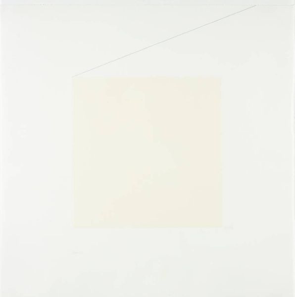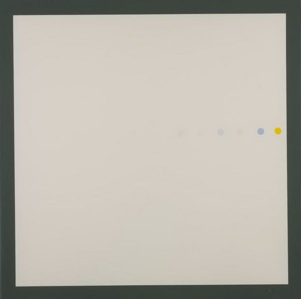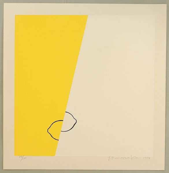 Curator: This acrylic on canvas, "Untitled," comes to us from Olivier Mosset in 2001. It presents a bright yellow arc in the upper-left corner against a field of white. A minimal composition. Editor: Stark. Makes me think of an eclipsed sun. The near-absence of imagery, coupled with the bold color, is striking, almost iconic in its simplicity. Curator: Mosset’s work consistently pushes against conventional notions of painting, echoing minimalist ideals but also flirting with op art and hard-edge painting techniques. How might you interpret that minimal arc in that light? Is it simply a form, or something more charged? Editor: It could represent the ouroboros, the snake eating its tail. Think about it—the cyclical nature, destruction and rebirth—emphasized by the missing segment. There's something ancient and universal in that incomplete form, inviting meditation. What draws your eye as a materialist? Curator: I am interested in what his process suggests. In this period, Mosset engaged in almost industrial modes of production in his studio. There's an efficiency, maybe a critique, embedded in the clean execution, that resists the handmade intimacy we associate with "high art." It becomes less about the "soul" of the artist and more about the systemic and mechanical creation. Editor: Yet, isn't there an inherent tension in its presentation? The stark canvas isolates the symbol, magnifying its symbolic potential. It feels monumental, regardless of actual scale, which is suggestive to how abstract forms retain cultural weight, independent of production context. The symbolism persists. Curator: Perhaps. I would suggest focusing on its physical presence. Acrylic applied methodically on canvas. An engagement with materiality divorced from the intention of symbolic weight, liberating the act of painting itself. What do you make of this dialogue? Editor: It demonstrates, I think, that while contexts shape perception, images possess an intrinsic resonance across cultures and eras. Curator: And for me, this confirms that art can, and maybe should be, considered through both making and symbolic perception.
