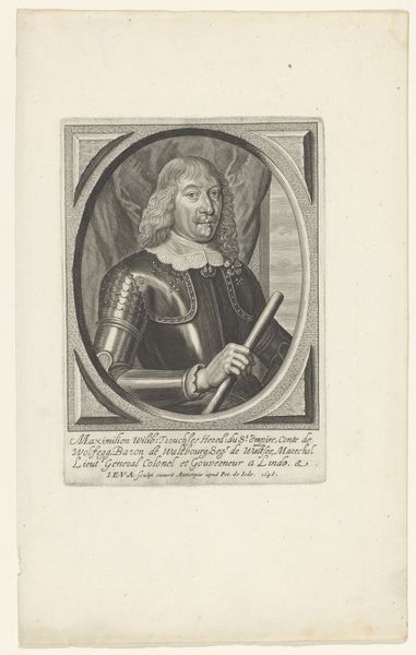 Curator: Here we have Herman Hendrik Quiter's 1679 print, "Portret van Aloysius Bevilacqua." It's an engraving on paper. Editor: It’s somber. Very detailed rendering of the face, but there’s a density, a uniformity of tone that feels almost suffocating. Curator: The engraving technique itself contributes to that, I think. We are seeing a detailed example of period-specific production. Quiter meticulously etched the image, line by line, into a metal plate. It shows how artistic skill translated to printing as a form of production. This artwork highlights the transition from craftsmanship to something that allowed broader distribution. Editor: And dissemination of power. This isn’t just an image; it’s an artifact reflecting social hierarchies. The sitter, Aloysius Bevilacqua, held a significant position within the church hierarchy as evidenced by the text below the image, claiming he held a high position within the Vatican in the area now known as Nijmegen. Portraits like these played a vital role in reinforcing those institutional structures, especially in the baroque era when imagery was used strategically. Curator: Exactly. Consider the materiality further—the choice of paper, the ink used. Were these materials locally sourced, or did they represent wider trade networks? The value judgments of the high art world tend to overshadow the importance of the production behind reproducible media like engravings, making the labor, source and networks less visible. Editor: It certainly prompts us to consider art's public role at the time. Was this image primarily intended for the eyes of other high-ranking church members, as a mark of respect and mutual recognition? Or were they accessible to the broader public as a reminder of power? The copies produced from the engraving extended Bevilacqua’s influence beyond the original audience for an individual portrait. Curator: This deepens our understanding. The work reveals production techniques and social implications. The print enables the church and those in it, to permeate through many levels of 17th century society. Editor: It offers a fascinating glimpse into how an image can act as a tool of social cohesion.