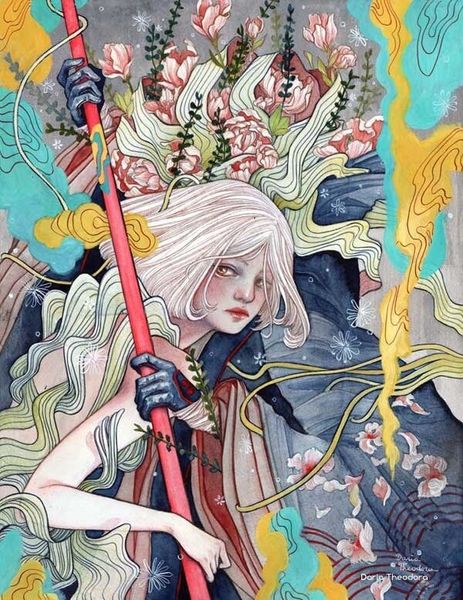 Curator: Here we have Victo Ngai's "Knowledge Broker," created in 2017 using acrylic paint. At first glance, what strikes you about it? Editor: A little unsettling, if I'm honest! It’s gorgeous, don't get me wrong, but there’s something about the cool, almost detached color palette paired with this very stylized swan and child that feels like a beautiful, melancholic dream. Curator: Yes, the formal choices certainly create that tension. Note how Ngai uses a limited color scheme – primarily blues and greens – punctuated by the stark white of the swan and the red hair of the child. This restrained palette serves to heighten the sense of otherworldly detachment you mentioned. Then observe the rhythmic composition that marries balance with dreamlike fantasy. The swan dominates the composition, but notice how the lighthouse elements ground the overall visual harmony. Editor: And those lighthouses… each perched precariously on tiny islands, almost like fragmented memories or islands of knowledge in a vast ocean. I am immediately curious about the symbolism of the lighthouses as purveyors of light when paired with a “knowledge broker” of sorts. Curator: Precisely. Ngai masterfully interweaves symbol and structure. The figure on the swan, seemingly a child, controls the journey, hinting at the manipulation or mediation of wisdom, and each lighthouse with its specific glow adds meaning and creates an environment to contain these allegorical figures. It is as if a young adept can broker knowledge across planes. Editor: Almost like accessing forbidden knowledge? I can’t shake the sense that the journey this piece depicts is somewhat perilous. The child's neutral expression gives it that ominous feeling… are they truly in control or merely along for the ride? Curator: That ambiguity, I would argue, is a significant strength of Ngai's approach. The artist employs both her precise and surreal brushwork to craft narrative openness—a canvas for individual interpretation. The elements are concrete yet suggestive, compelling us to question the true nature of knowledge and those who broker it. Editor: For me, it stirs up a potent mix of curiosity and unease, making you wonder what price you would pay for illumination. Victo Ngai truly knows how to deliver both narrative depth and a surreal vision that I'd expect to meet in my next fever dream. Curator: An interesting take indeed. "Knowledge Broker" embodies both formal brilliance and rich symbolic suggestion, truly exemplifying a narrative and thoughtful artistic exploration.