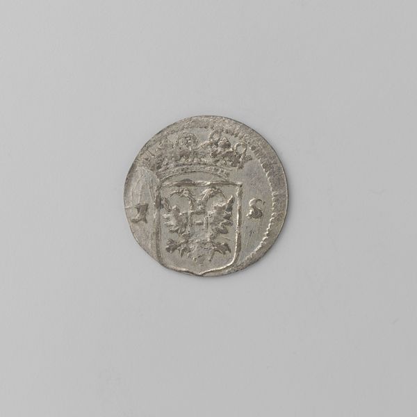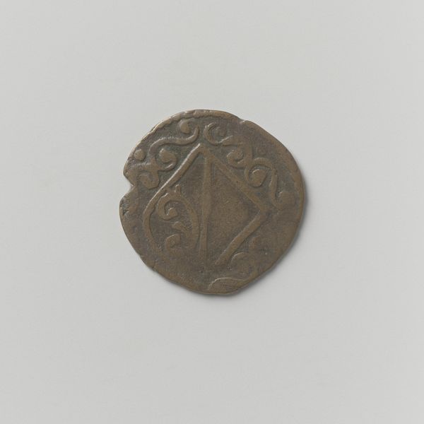 Curator: Here we have "Halve plak van de Drie Steden", dating from 1534, crafted from metal. A humble coin. Editor: It looks almost ghostly, doesn’t it? Very worn. And somehow severe despite its size. I imagine someone clutching it tightly for security. Curator: These "Drie Steden" referred to three Dutch cities joining forces - that’s a powerful statement of political unity, rendered in miniature, circulating amongst the populace. Coinage in this period became critical, a token legitimizing emerging powers. Editor: It is compelling that a simple image could solidify the union, even create an identity out of the union of these cities, what symbolism can you glean from the markings? They are obviously emblematic but how can it give agency? Curator: Indeed, we have heraldic devices compressed onto this small surface. This served as propaganda but, just as significantly, it facilitated burgeoning trade and governance. Editor: Imagine, every transaction reinforces a visual pledge. Like a quiet, insistent hum in the background of daily life! So, who did decide on the image, did these symbols carry a cultural legacy for the populations? Curator: Undoubtedly there were specific emblems deeply ingrained in the citizens' understanding of their world. Its very existence marks a pivotal moment, the Dutch burghers seizing control. Money truly became power in the late Renaissance! Editor: Something so small bearing the weight of a socio-economic revolution! Now I understand why I feel so impressed with its presence. Thank you. Curator: My pleasure, its always fulfilling to observe our currency origins and influence.