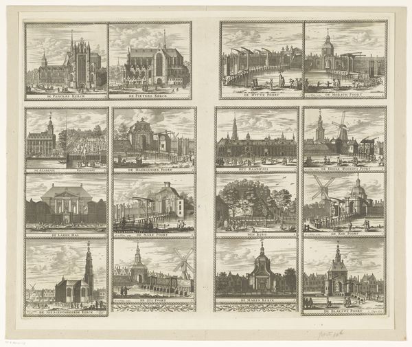 This is a compilation print of engravings, made by an anonymous artist to depict various cities. The printmaking process is key here. It would have started with a series of drawings, translated onto metal plates, likely copper, by a highly skilled artisan. Each line meticulously etched or engraved, demanding a precise understanding of perspective, composition, and the burin's capabilities. The choice of printmaking speaks volumes about the intention behind the artwork. Unlike unique paintings or sculptures, prints are inherently reproducible. They were conceived as a way to widely disseminate information and perspectives. The scenes show locations such as Ormovs, Svrattte, Bantam, Damasco, Batavia, Iervsalem, Goa, and Calecvth. The repetitive nature of printmaking allows for a broad reach, which is in direct service to global trade. Each impression of this print carries the weight of labor, skill, and the ambition to capture a world increasingly connected through commerce and power. The print sits at the intersection of art, industry, and global exchange.