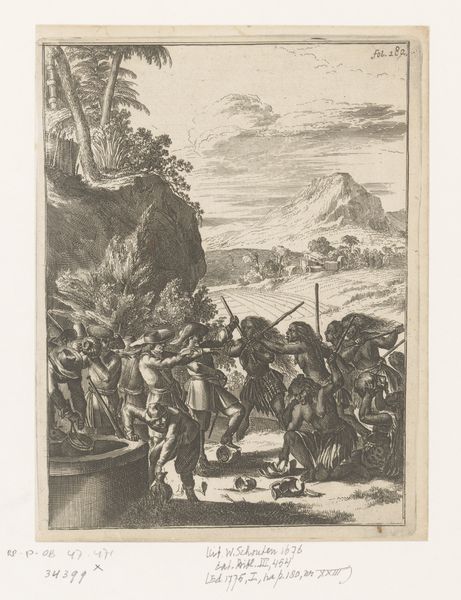 This unsigned print, titled *Meeting between the Governor of Pipely and the Fleet from Arakan*, offers a glimpse into the complexities of 17th-century colonial encounters. The print depicts a governor on horseback greeting an incoming fleet. The power dynamics are palpable. The governor, an imposing figure, oversees the arrival of the fleet, which symbolizes both trade and potential subjugation. The figures in the foreground appear to be local inhabitants, caught between curiosity and apprehension. Their posture and placement suggest a people on the verge of being impacted by colonial forces. This image is not merely a depiction of a historical event; it is a reflection on the narratives of power, cultural exchange, and the often-unequal terms of engagement between different worlds. While the artist remains anonymous, this print invites us to reflect on the emotional and personal dimensions of colonialism, and to consider how such encounters continue to shape our world.