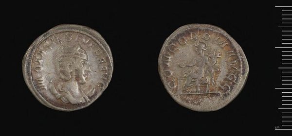 Editor: Here we have a Tetradrachm of Antioch under Philip I. It's fascinating how a simple coin can carry so much weight, literally and figuratively. What stories do you see embedded within this artifact? Curator: This coin is a powerful statement of Roman imperial authority and its complex relationship with its provinces. The image of Philip I represents Roman power, but the fact that it was minted in Antioch speaks to the ways in which local identities were also being negotiated and asserted. Consider the eagle, a symbol of Roman power, alongside inscriptions that reflect a blend of cultures. How does this layering of symbols complicate our understanding of Roman rule? Editor: It highlights the constant negotiation and adaptation of power, it isn’t just a one-way imposition. I hadn't considered the complexities of cultural exchange within imperial symbols. Curator: Precisely. And thinking about Philip's Arab heritage, we can consider how his identity might have been strategically deployed within the broader context of the Roman Empire's interactions with the East. Editor: That's a great perspective to consider. It makes me see the coin as less of a static object and more of a record of complex social and political interactions.