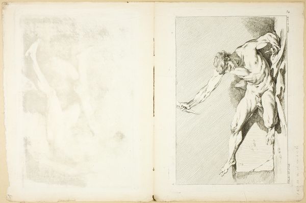 This is a quick sketch by Louis Royer, made with pen and ink. The relatively humble materials give this work a loose, provisional quality. The artist has left the marks of his process visible, and the image feels unresolved. Royer was a successful sculptor in his day, known for his large-scale public commissions. He made several statues for the square in front of the Royal Palace in Amsterdam. This sketch may be a preparatory study. What makes this drawing interesting is the contrast between its classical subject, a heroic male nude with a flag, and the immediacy of its making. The monumentality Royer sought in his sculpture was achieved through a laborious process of carving stone. But here, he explores the same themes with just a few strokes of his pen. It reminds us that any artwork is always a product of both concept and craft.