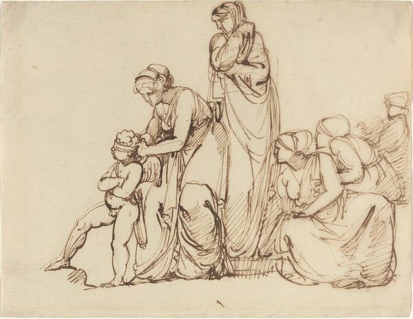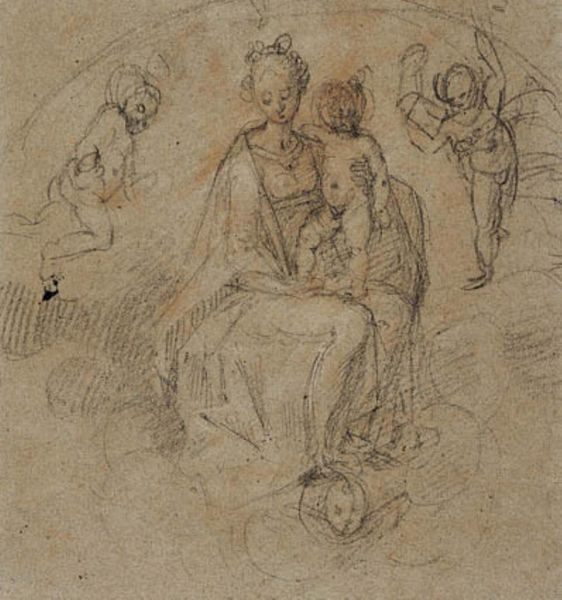 Peter Paul Rubens created this drawing, "Presentation in the Temple," during the height of the Baroque period, a time marked by religious and political upheaval. The sketch captures the biblical episode of the infant Jesus being presented at the temple in Jerusalem. Rubens was a devout Catholic whose artistic output often supported the Counter-Reformation. In the sketch, we see the figures of Mary and Joseph presenting Jesus to Simeon, a priest, and Anna, a prophetess. The composition suggests a focus on motherhood and the role of women in religious narratives, while also emphasizing the divine nature of Jesus and his destiny. Rubens’s loose, fluid lines convey a sense of immediacy and emotional intensity. The expressions on the faces of the figures, though minimally rendered, hint at a mix of reverence, anticipation, and perhaps even apprehension. It is a deeply human moment, capturing the tender act of entrusting a child to a higher purpose. The scene not only reflects the religious beliefs of the time but also touches on the universal emotions tied to parenthood and faith.