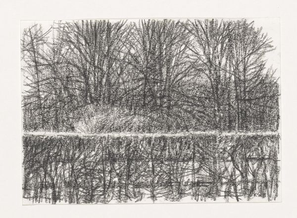 Here's "Trees without Leaves behind Hedge" by Kees Stoop, done with graphite on paper. It’s all about the layering of marks, a real meditation on process, like how a landscape reveals itself over time. Up close, you can see how Stoop coaxes out different textures with such simple means. The hedge is a frenzy of short, nervous strokes, a dark band, while the trees behind are built up with longer, more deliberate lines. Notice how some of the lines are darker, thicker, maybe put down with a softer graphite, and others are lighter, almost wispy. It's like he's mapping the energy of the scene. In the negative space, the stark white of the page becomes as important as the marks themselves. It reminds me a bit of Agnes Martin’s work – that same quiet intensity, that sense of searching for something beyond the surface. It's like Stoop’s showing us that a drawing isn’t just about what you see, but about how you see.
