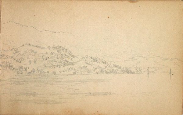 Curator: This is François Le Moyne's "View of Mola di Gaeta," a delicate pencil drawing measuring about 22 by 36 centimeters. Editor: The subdued palette creates a tranquil mood; the composition, with its receding planes, suggests a journey into the unknown. Curator: Mola di Gaeta, now Formia, Italy, has been a strategic port throughout history. Le Moyne's image captures a moment of relative peace, perhaps, before the storm of geopolitical conflict. Editor: I'm intrigued by the artist's use of line—how it defines form yet also dissolves into the atmospheric haze, creating a sense of both presence and absence. Curator: Indeed. The drawing embodies a tension between the specific locale and the universal longing for stability amidst change. Editor: It invites reflection on the transient nature of power and the enduring beauty of the landscape.