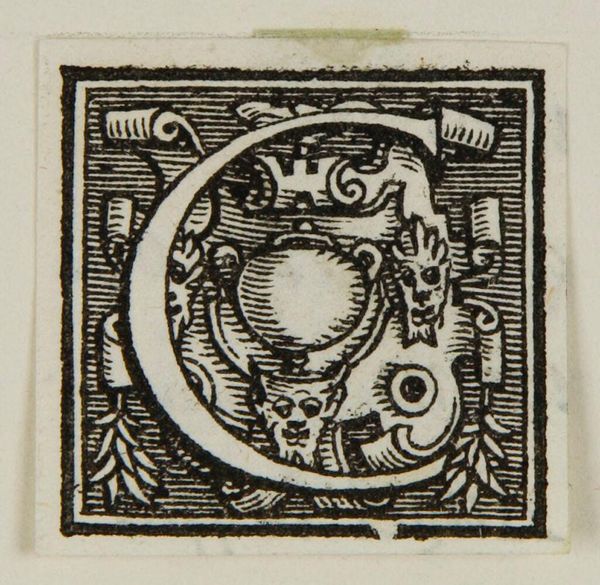 Curator: This is "Initial D" by an anonymous artist. You can find this intriguing piece at the Harvard Art Museums. What are your initial impressions? Editor: Well, the elaborate detail packed into such a small space strikes me first. It's almost unsettling with those grotesque mask-like faces peering out from within the letter. Curator: Indeed. These initial letters were very common in printed books, weren’t they? Consider the shift from hand-illuminated manuscripts to mass-produced texts. This letter signals a change. Editor: Right. And it raises questions about accessibility and power, doesn’t it? Who had access to these books? Whose stories were being told, and whose were being left out? Those faces – are they meant to intimidate, or to simply signify authority? Curator: A lot to consider indeed. Thanks for helping us to delve into this fascinating initial. Editor: My pleasure. It's a potent reminder of the narratives embedded in even the smallest artistic choices.