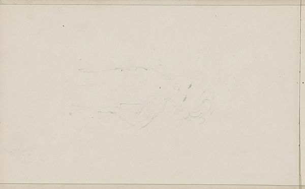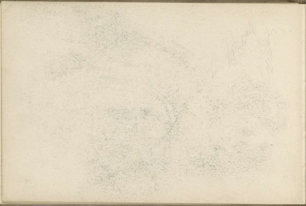 Editor: We are looking at "Abklatsch van de krijttekening op pagina 24 verso," a pencil drawing on paper by Carel Adolph Lion Cachet, from around 1905. It’s very subtle, almost like a ghost of an image. I see faint lines, hinting at geometric shapes, barely there on the page. What stands out to you in terms of its composition? Curator: Precisely. The extreme subtlety is its defining characteristic. Note the deliberate use of line – almost ephemeral. The composition isn’t about the geometric shapes themselves, but the *relationships* between these barely visible forms. The negative space is equally important; it defines what little positive space exists. Editor: So you're saying the emptiness is just as crucial as the lines? Curator: Absolutely. The sparse lines wouldn't have as much visual power without the void surrounding them. It begs the question, what exactly did the artist seek to explore with this method? What meaning can be derived from it, beyond geometric art? Editor: It's interesting how little is there, but how much there is to consider in it as a result! Curator: A seemingly simple sketch encourages a closer look at what drawing and form can mean. I think Cachet makes the viewer work a bit harder to grasp that idea, through pure formalism. Editor: Thank you! I will never look at a faint line in the same way! Curator: And I, through our talk, better understand that such sparseness encourages viewers to supply their own interpretations more freely. A good dialogue, indeed.