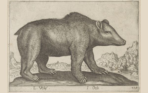 Curator: Here we have Antonio Tempesta’s "Varkensdas," an engraving that dates from before 1650. It resides here at the Rijksmuseum. The rendering is rather peculiar. Editor: Indeed, the stark, linear quality gives the badger an almost fierce, determined air. It's grounded by that very textural base, that looks almost like crumpled paper—a perfect material foil. Curator: Considering Tempesta's time, such animal depictions often carried symbolic weight. The badger, then and now, is liminal creature associated with resourcefulness. Did you notice its teeth? They reveal the predatory instincts barely concealed behind a benign mask. What sociopolitical themes does this mask speak to? Who profits? Who pays the price? Editor: Good point. Look at how he uses those dense, closely-hatched lines to define the badger’s form— it’s all about volume and mass conveyed through incredibly economical means. A marvel in describing shape. The animal virtually emerges from the paper. Curator: True, but it would be reductive to discuss artistic value only based on technique, as though its making exists separate from culture! During the Baroque era, animals were allegories for societal figures. To see Tempesta's "Varkensdas," is to be confronted with a question: Who has to live by animal cunning to survive in this society? Why? Editor: But haven’t we both side-stepped that this remains, first and foremost, an animal portrait? To disregard his line work in favour of making broad, tenuous analogies... that diminishes its value as an observable thing. Curator: To discuss art removed from history is the more reductionist path. "Varkensdas" provides an important historical lens to explore how social structures are constructed, justified, and internalized through art. This can inform discussions about labor exploitation. Editor: I'm still captivated by the way the light seems to catch the fur. Curator: Right. But perhaps this time in our gallery visit, our point of departure is about reflecting how structures of social inequalities are reinforced. A reflection about class... Editor: I see your point. There's undeniable weight to considering what these artistic choices represent outside of pure form. I will think more about it.
