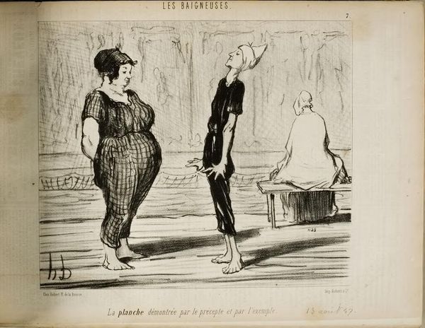 This lithograph, by Honoré Daumier, likely created mid-19th century, is an example of his satirical commentary on French society. Daumier was a master of social critique. Here, he presents a scene from a women’s bathhouse. The title, "The plank demonstrated by precept and example," suggests an ironic take on health or beauty standards. France at this time saw the rise of the bourgeoisie with their emphasis on social etiquette. Daumier often poked fun at the bourgeoisie through the lens of class differences and gender stereotypes. Lithography, as a printmaking medium, allowed for mass production. Daumier’s prints often appeared in newspapers and journals. This demonstrates a changing art world, where the artistic sphere was entering the public domain. To fully appreciate Daumier’s work, it's important to look at periodicals of the time. Through these, we can better understand the artist's intended audience and the social context he engaged with.