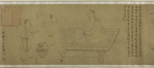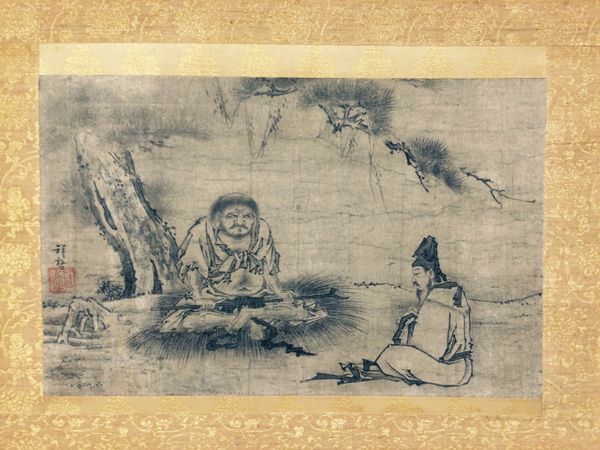 Editor: This is Qian Gong's "Poets Gathering in the Orchid Pavilion," from 1607, using ink on paper. The monochrome palette really lends an austere and contemplative feeling to the whole piece. There's so much delicate line work creating the figures and landscape... What's most striking to you about it? Curator: It's the very deliberate application of ink, the labor inherent in that process, that immediately grabs me. Think about the artist selecting the paper, grinding the ink, controlling the brushstrokes to depict this idealized gathering. Consider the accessibility of those materials at that time; it speaks volumes about the artist's patronage and the intended audience. What social dynamics might be at play here, controlling access to resources and therefore cultural production? Editor: That's a great point. The ink and paper elevate what could otherwise be just a scene of leisure. The gathering becomes almost a statement. How does the setting contribute to that message? Curator: The landscape itself isn't just backdrop; it's actively shaped and understood through human interaction and intervention. Where did Qian Gong source his pigments? Were his brushes handcrafted? Those are clues to understanding not just the artwork, but the economic and social network that enabled its creation. What level of craftsmanship does the construction of the pavilion suggest? Is that representative of its broader accessibility or place within Ming society? Editor: I never considered the landscape as an active participant before, more as a passive setting. Examining the materials and means of production definitely open up entirely new avenues of interpretation. Curator: Exactly! By looking at the material conditions, we move beyond just admiring the aesthetic to understanding the forces that shaped its creation and its place in society. Editor: This has given me so much to think about, seeing the materials and the crafting of the scene as key elements. Thanks so much!