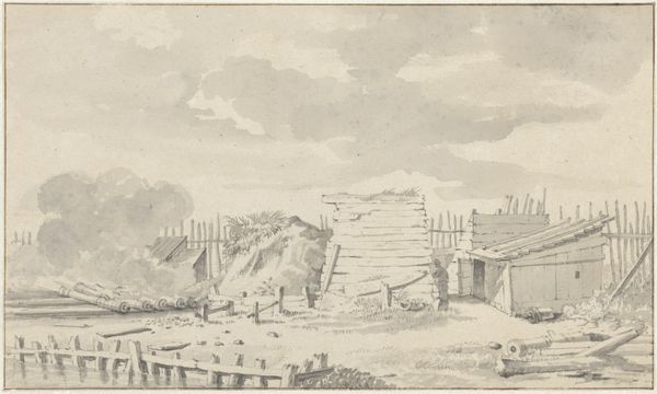 This study of the Ponte Sant'Angelo and houses on the Tiber's east bank was created with graphite on paper by Joseph Marie Vien. Graphite, though seemingly simple, allowed Vien to capture the subtle gradations of light and shadow playing across the Roman architecture and landscape. Notice how he used varied pressure and density of strokes to define the forms. The texture of the paper itself contributes to the sketch's overall effect. The relative softness of graphite is ideal for quick sketching as it effortlessly glides across the fibers of the paper. It would be especially useful for preparatory sketches en plein air because the material is easily portable and the paper can be crumpled into a small ball. Vien's choice of material is significant. Rather than meticulously rendering every detail, he prioritizes capturing the essence of the scene with efficiency. This approach reflects the changing landscape of artistic production at the time, influenced by the rise of industrialism and the need for rapid documentation.