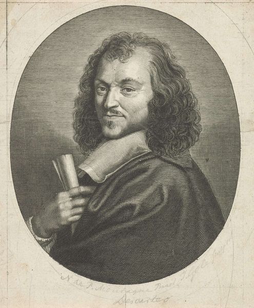 Curator: This is Gérard Edelinck's "Portret van Antoine Arnauld," created sometime between 1652 and 1707. Editor: My first impression is one of formal intensity; the oval frame and meticulously etched lines create a very serious, contained mood. It's incredibly detailed. Curator: Edelinck, a master engraver, captures Arnauld, a prominent theologian and philosopher. His Jansenist beliefs placed him at the center of religious and political debates. This portrait provides a glimpse into the intellectual circles that shaped seventeenth-century France, and the kind of influence such thinkers wielded. Editor: The contrasting textures achieved through engraving—the smoothness of Arnauld's face against the rich fabric of his robe, for instance—create a dynamic visual experience. The almost photorealistic effect achieved with simple lines is astonishing. Do you see how the direction of the lines suggests roundness and volume, Editor: effectively modelling the contours of his face? Curator: Precisely. And his gaze—knowing, maybe even challenging—it reflects a life steeped in controversy and intellectual rigor. He looks every bit the Doctor of Sorbonne. I also think of the context. Edelinck worked at a time when images like this circulated widely, shaping public perception of powerful figures, not always fairly. It humanizes a historical figure, sure, but it also arguably perpetuated or contested certain established ideologies, both religious and political. Editor: Agreed, there's that careful balance. While capturing Arnauld's likeness, Edelinck's skill also invites a formal appreciation, allowing us to consider the construction of identity through the artist's rendering. The way the light falls on his face almost elevates his brow, emphasizing his status. It's fascinating to see how technique and personality come together here. Curator: Indeed. Examining this piece invites us to look past the aesthetic brilliance and see the portrait as an artifact loaded with social and political significance. It's a powerful convergence of image and intellect. Editor: And I appreciate seeing the engraver's ability to take simple lines and give a face such dimension and, frankly, a striking level of intensity. A potent demonstration of Baroque engraving at its finest.