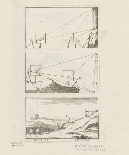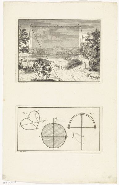 Bernard Picart created this print, "Vogels vangen, vishengel en wortels oogsten," sometime between 1693 and 1733, demonstrating various methods of catching food. Picart was a French engraver who worked across Europe. Prints like this one, made in the Netherlands, offer insights into 18th-century society, revealing both practical knowledge and underlying assumptions about the natural world. The detailed depiction of hunting and fishing techniques speaks to a culture deeply connected to the land. However, the print also reflects the social hierarchy of the time. Hunting was often associated with the upper classes, while fishing and harvesting were seen as more common activities. The print, therefore, provides a glimpse into the economic structures and social practices of the Dutch Republic. Examining prints like this one, alongside historical texts and other visual sources, helps us understand the complex relationship between humans and their environment in the past. It reminds us that art is not created in a vacuum, but reflects the values and beliefs of the society in which it is made.