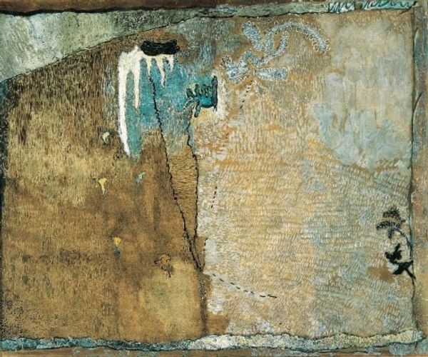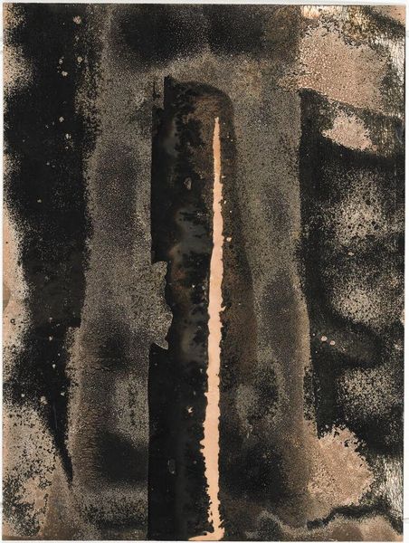 Editor: Here we have an Untitled oil painting by Zdzislaw Beksinski. The somber, muted tones create a haunting atmosphere, and I find myself drawn to the almost spectral figures encased within geometric forms. What do you see in this piece, what symbols might Beksinski be exploring? Curator: I see echoes of cultural memory, recurring nightmares perhaps. Those vertical forms, are they sarcophagi? The mind latches onto symbols: The elongated shapes evoke funerary objects, suggesting entombment, not just physical but perhaps spiritual or emotional as well. Look at how the dark vertical form dominates, seemingly trying to erase or engulf the other lighter, ethereal presences. Do you feel a sense of struggle? Editor: I do. A struggle for… recognition? Or maybe, even for freedom? I didn’t initially think of sarcophagi, but now I see it. Are the lighter shapes also figures, somehow trapped or in transition? Curator: Perhaps. The symbols themselves aren’t fixed. Consider, too, how the textures play into this. Beksinski worked in layers. The smooth and rough, almost geological. These paintings become vessels for collective anxieties. Do these images not recall a long history of visualizing death and the afterlife? Think about Ancient Egypt, or even the Christian iconography of judgment. Editor: They definitely resonate with those older traditions. It's fascinating how Beksinski distills such ancient themes into such a modern, abstract language. Curator: Precisely! He's tapping into primal fears, using symbols we might not consciously recognize but that speak to us on a deeper level. A truly fascinating, unsettling, and very human image. Editor: It’s really shifted my perspective seeing it through that lens, thinking about these forms as both individual anxieties and larger, collective memories. Thanks!