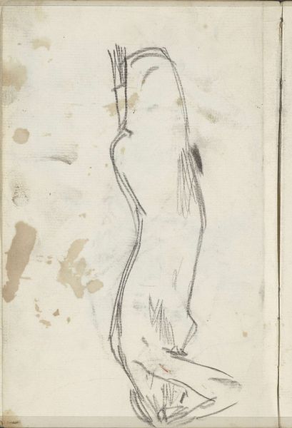 This sketch of a standing female nude is by George Hendrik Breitner and it resides at the Rijksmuseum. The sketch appears to be made with graphite on paper. The composition shows an unconventional, almost confrontational perspective from below. It challenges traditional portraiture and the nude, inviting us to consider new ways of seeing the human form. The quick, sparse lines suggest movement, yet the figure seems grounded, creating a tension between dynamism and stillness. Breitner used line economy and the absence of color to emphasize form and structure, inviting us to focus on the relationship between the figure and the surrounding space. This destabilizes conventional beauty standards and prompts a reflection on the subjectivity of perception. By stripping down the representation to its bare essentials, Breitner compels us to engage with the underlying structures that inform how we perceive and interpret the human body.