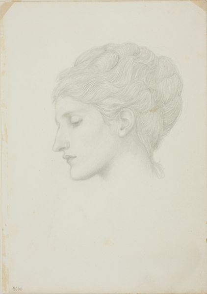 This is _Studie zu Sabine von Steinburg_, a delicate pencil drawing by Moritz von Schwind. It is currently housed in the Städel Museum. The drawing presents a profile of Sabine von Steinburg. Notice the subtle play of light and shadow achieved through delicate lines. Schwind’s technique emphasizes a precise, almost classical structure. The composition is simple, focusing entirely on the subject's face. This emphasis on form and line, rather than color or texture, reflects a deeper exploration of ideal beauty and representation, where the structural elements convey more than just a likeness. In its restraint and precise execution, the drawing becomes a site where formal qualities communicate broader aesthetic and philosophical ideals of its time.