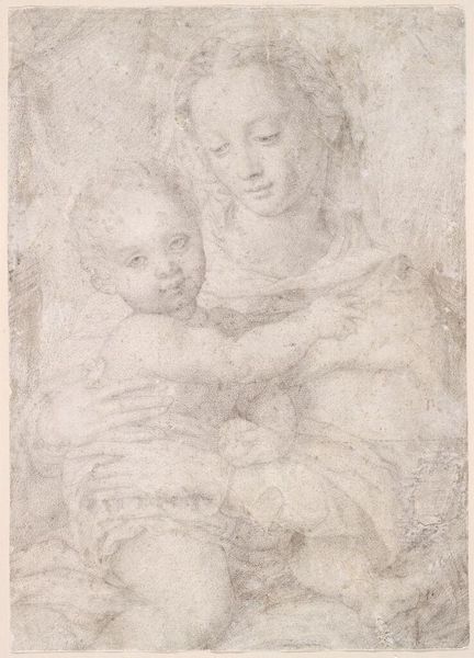 Albrecht Dürer sketched "Madonna and Child in Half Length" with a silverpoint, a fine drawing instrument which renders in delicate lines and subtle gradations of tone. During the Renaissance, images of the Madonna and Child were incredibly popular, reflecting the era’s deep religious faith and the cultural idealization of motherhood. Dürer, however, personalizes the scene by rendering the figures with a tangible humanity. The Madonna's tender gaze and the child's playful gestures reveal an intimate bond, challenging the more formal and distant representations of the subject common at the time. Dürer lived in a society where women’s roles were largely confined to the domestic sphere, with motherhood being their primary function. The sketch invites us to reflect on the lived experiences of women and the cultural expectations placed upon them. This Madonna embodies both the sacred and the human, making the divine accessible through the everyday.