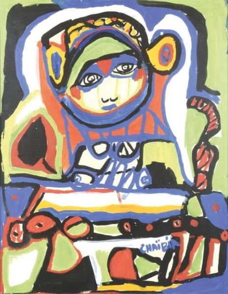 Victor Brauner painted this work, Portrait aux fleurs, in 1953, though the medium is unknown. The portrait is dominated by a woman's face, split into contrasting light and dark sections, framed by an ornate halo-like structure. This division creates a striking visual tension, challenging our perception of wholeness. The painting's background is filled with abstract floral motifs. These botanical shapes serve not merely as decoration, but as semiotic signifiers, perhaps alluding to the duality of nature—life and death, beauty and decay. Brauner destabilizes traditional portraiture by fragmenting the face, disrupting the coherence of identity. The halo, usually a symbol of sanctity, is re-imagined here as a fragmented circle, complicating conventional meanings. This pushes the boundaries of representation. Ultimately, "Portrait aux fleurs" uses formal elements to engage with profound questions about identity, representation, and the multifaceted nature of existence. It invites us to reflect on how art can challenge fixed meanings and open new avenues for interpretation.