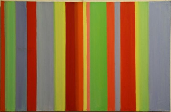 This untitled painting by Michel Carrade presents us with vertical bands of color. Even in abstraction, the vertical line carries a profound symbolic weight. Think back to ancient civilizations: standing stones, obelisks, the very architecture of temples and cathedrals, all reaching skyward, symbolizing aspiration, connection to the divine, and a reaching beyond the earthly realm. The colors themselves—red, green, blue—conjure elemental associations. Red, the color of blood and passion; green, of life and growth; and blue, of the sky and sea, suggestive of boundlessness. Consider, for instance, the recurring motif of verticality in Barnett Newman's "zip" paintings, or even the stripes in flags across nations, each a visual assertion of identity and shared experience. This simple band of color carries forward this history of symbolism, resurfacing, evolving, and taking on new meanings in our modern context.