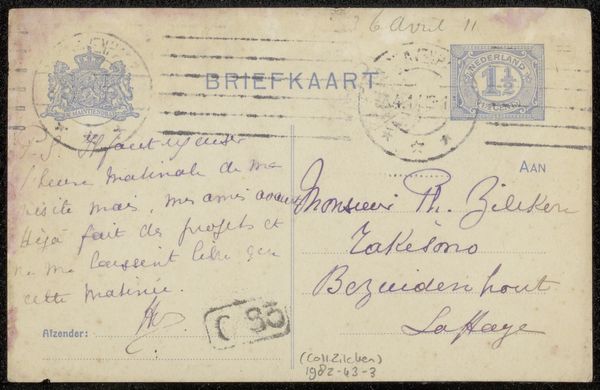 This card was sent to Philip Zilcken, an artist like Adrienne s' Jacob, using the postal service. You can see the traces of its journey in the smudges, stamps, and handwriting. The uniform beige of the card is interrupted by brown and grey marks. The stamps are clearly defined, and the handwriting is neat and elegant. Think about how these graphic elements act as a kind of drawing, or a collage of different textures and tones. Consider the way that these are the product of a process, the accumulation of actions and events. How these elements were placed on the surface, and the impressions they made, like a form of expressive mark-making. The card reminds me a little of the work of Ray Johnson, who also used the postal service as a medium. Unlike Johnson's work, this card embraces the ordinary, finding beauty in the everyday. It's a reminder that art can be found in unexpected places, and that even the most mundane objects can be transformed through attention and imagination.