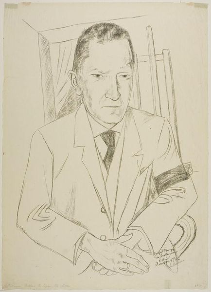 Editor: Here we have Isaac Israels’ "Portret van Nehemia de Lieme," a drawing from around the 1920s, currently at the Rijksmuseum. The immediacy of the lines and the pose give it a feeling of a candid moment. What’s your take on it? Curator: This drawing speaks volumes about artistic labor and production in the early 20th century. Israels’ choice of pencil and paper – easily transportable, readily available – democratizes the act of portraiture. Instead of oil paints and commissioned settings, we see the artist engaging in quick, perhaps unsanctioned, documentation. Editor: Unsanctioned? Curator: Consider the sitter's attire and the casualness of the sketch. It isn't glorifying De Lieme as a bourgeois hero but rather presents a worker or an intellectual within their everyday context. How does the lack of precise details challenge the concept of traditional portraiture and elevate the everyday making it art? Editor: I guess by blurring lines…making this not “high art.” The quickness suggests he valued the subject’s character or social position beyond needing it perfectly captured… I like that challenge! Curator: Exactly! The *means* of production – simple tools, swift execution – underscore a shifting value system. Israels prioritizes observation, documenting individuals without needing a fancy setting and that shifts value from high art ideals to an observant person in society. This challenges notions of what and whom gets immortalized through art. Editor: That's a great way to think about it – as a subversion through the tools and the process itself, showing labor. The value is in the process of sketching itself. Curator: Precisely. Recognizing how even "simple" sketches can reveal powerful statements about the world around them by valuing different kinds of workers.