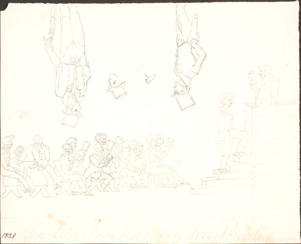 Editor: Here we have William Roberts’ Study for ‘The Hostesses’ at the Tate. It's a graphite sketch, and I'm struck by how theatrical the composition feels, almost like a stage setting. What's your take on it? Curator: The figures do seem arranged, don’t they? Perhaps Roberts is inviting us to consider the performance of social interactions. Note how the grid underlies the sketch, a framework for his figures. Does that suggest to you a sense of constraint or control? Editor: I hadn't thought of that. The grid almost makes it feel like a blueprint. It gives a structure. Curator: Precisely! And what stories might these ‘hostesses’ tell, concealed behind their carefully constructed postures? Are we looking at a celebration, or something more subdued? It is a great piece to ponder! Editor: I never thought a simple sketch could have so many layers.