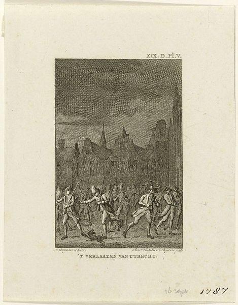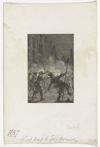 Reinier Vinkeles etched this print, “Opstand van het Kaas- en Broodvolk,” depicting a riot in Haarlem in 1492. The central image shows a chaotic uprising: men with clubs attack a fallen figure while others wave banners. The clubs wielded by the mob are primitive weapons, symbols of raw, untamed anger. Banners representing local affiliations flutter in the background, illustrating the collective nature of the revolt. Notice how such symbols of uprising recur throughout history, from ancient peasant revolts to the French Revolution. The club, a simple tool turned weapon, transforms into a potent emblem of the oppressed rising against authority. This is reminiscent of the classical motif of the "Fasces," a bundle of wooden rods signifying power and unity, which can be seen in Roman art. But here, the singular rod becomes a bludgeon, a symbol of violent action. The psychological weight of such imagery is profound. It taps into a collective memory of struggle and resistance, evoking powerful emotions tied to the human desire for justice and equality. The act of bearing arms or a simple club has taken on new meanings in our own time with different groups brandishing them in new ways. Consider the image as a potent reminder of the cyclical nature of history, where the yearning for freedom manifests again and again.