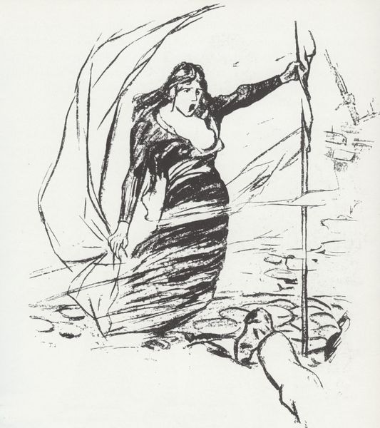 Editor: This is "By the Water," a pen and ink drawing from 1917 by Arnold Peter Weisz-Kubínčan. There’s a real starkness to it with the sharp lines and the contrast of the ink. The woman's pose looks really vulnerable. What strikes you when you look at this? Curator: The figure’s nudity, situated "by the water," immediately makes me think about historical and cultural constructions of women's bodies and their connection to nature. Think about how often women, particularly women of color, have been presented as inherently linked to the natural world, often framing them as more instinctual or less civilized. Does Weisz-Kubínčan engage with or subvert this tradition, especially considering the historical context of 1917 and the upheavals of the First World War? Editor: That’s interesting. I hadn't considered that angle. I was focused on the sort of…exposed feeling the drawing has. Curator: Right, but exposed to what? What about the mark-making itself? Notice how the halo-like arrangement of dots around her seems to cage her in, while also elevating her. The harsh ink strokes denote the roughness of the stone. Is this roughness a form of violence? How might ideas around feminine ideals relate to the experience of the Great War? Do you think the work normalizes or perhaps problematizes dominant, perhaps even idealized notions of female beauty at that time? Editor: I think it's somewhere in between, honestly. I do see the confinement you're talking about now, but there's also something very powerful about the figure itself, she’s self-possessed. Curator: Exactly. And that tension, that ambiguity, opens up possibilities for resistance and reinterpretation. It makes us consider the power dynamics at play, then and now, in how we see and represent women’s bodies. Editor: That’s given me a lot to think about, and helped me appreciate how context really influences how we read images! Curator: And for me, it highlights how even seemingly simple artistic choices can be loaded with social and historical meaning.