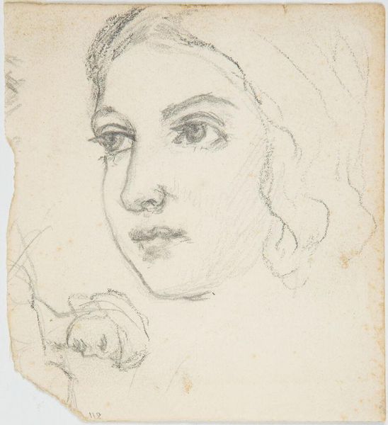 Editor: Here we have John A. Huybers' "Head of a Girl," a pencil drawing. There's an almost unsettling directness to her gaze. What do you see in this piece? Curator: The gaze is key. It prompts us to consider the historical context of portraiture, specifically young women. Whose gaze are we centering here? Huybers' or the girl's? Consider the power dynamics inherent in the act of observation itself. Editor: So, is the artist complicit in that power dynamic, or is he attempting to subvert it? Curator: It's an open question, isn't it? Reflecting on such artworks allows us to interrogate the politics of representation. Editor: I hadn't considered that. Thanks for your thoughts! Curator: My pleasure. Art challenges us to confront uncomfortable truths.