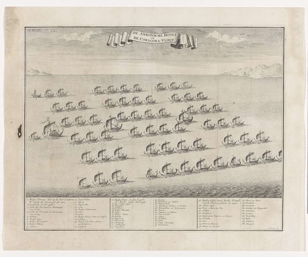 Editor: This drawing, "Verklaring bij de prent Gezicht van de zeeslag bij Kopenhagen," created in 1801, seems like an attempt to capture a historical event, but it's rendered almost like a schematic, an inventory, not just an illustration. How do you interpret this work? Curator: It's fascinating how this piece straddles the line between objective record and subjective representation. The lists and geometric shapes—almost hieroglyphic—evoke a need to impose order on a chaotic event. The sea battle itself becomes less about the visceral experience and more about the symbolic accounting of power and loss. Notice how each ship is almost an ideogram, bearing cultural and national weight. Editor: An ideogram of power, I see what you mean. It's like each ship represents a chapter in a much larger story, but how does the map-like quality contribute to this? Curator: The map serves not just as a visual aid, but as a tool for cultural memory. Battles, like sacred events, need fixed points, spatial relationships that cement the narrative in the collective consciousness. This image isn't just about what happened; it's about how the culture wants to remember what happened. Does that ring true to you? Editor: It does. I hadn’t considered the act of remembering as being so actively shaped. I initially saw it as detached and documentary, but there’s a very human story embedded in the arrangement itself. Thanks! Curator: Precisely! The visual language speaks to continuity, linking the past, present, and future interpretations of the event, influencing how we see ourselves. It has been a pleasure.