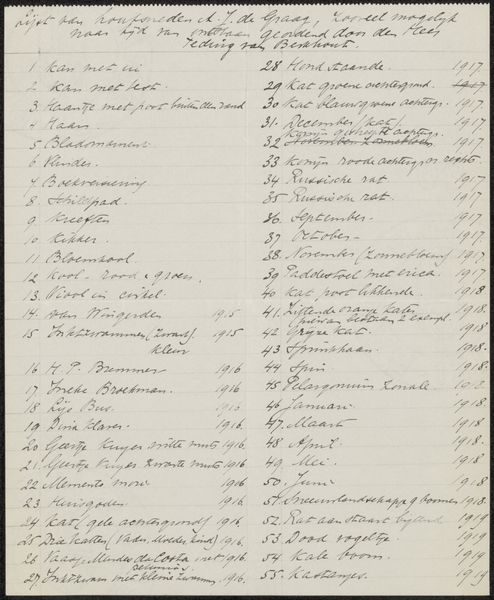 Curator: This ink drawing, “Lijst en aantekeningen van het grafisch werk van Jan Veth in het Rijksprentenkabinet,” was created in 1927. It’s intriguing, a seemingly straightforward list. There's a density to the lettering; it completely occupies the page. How do you respond to the formal elements at play here? Editor: The handwriting is very neat. I am curious how someone could fill a page so deliberately with uniformly sized text. The script and lack of images evokes an administrative document. How might you read this as a composition, rather than just a list? Curator: I note the consistent stroke width, and near uniformity of the script. Observe the variations in the density of the ink; each line is tightly packed, creating visual texture. It also looks as if it was printed as there is perfect alignment. But what I find compelling is its function, apparently as a listing of graphic work. The organization lends the list structure. Tell me, what interpretive frameworks might you employ when looking at those structural and compositional elements of the work? Editor: I think I'm starting to see how I might apply my semiotics training here: the form imitates administrative language. Was that a common design during the time that this artwork was created? What other clues could suggest an artistic value of such a formal work? Curator: The use of calligraphy transforms a simple record into a visual piece with distinct rhythms, echoing contemporary styles. If it really is handwriting rather than printed it makes for an authentic glimpse into the artist's cataloging methodology, one where we consider its structural harmony and methodical inscription as integral components. A type of personal language from which to decode and reconstruct Jan Veth's world! Editor: I hadn’t considered the lettering as being a choice with deliberate structure, rather than just information. That has given me much to consider!