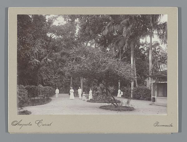 Curator: The sepia tones of this photograph lend it an aura of quiet contemplation. What do you notice first about this composition? Editor: A sense of serenity. The subdued light, the almost ghostly fountain... it evokes a feeling of nostalgic longing, a kind of idealized tropical vision. Curator: This photograph, titled "Botanische tuin, Las Palmas, Gran Canaria, Canarische Eilanden" – depicting the botanical gardens in Las Palmas – was taken sometime between 1900 and 1920, placing it firmly within the Pictorialist movement. The photographer is Jordão da Luz Perestrello. Editor: Pictorialism makes sense. I'm thinking about the construction of these leisure spaces in relation to colonialism; spaces where certain exotic, controlled, safe representations of "nature" are being projected and consumed by a European audience, distanced from the realities of colonial exploitation. Curator: Indeed, the controlled, almost stage-like composition speaks to that impulse. There’s a very deliberate arrangement to this garden. What strikes me is the almost performative aspect of these gardens as embodiments of power and control. The exotic landscape packaged as pure aesthetic experience, ignoring the labor and resources required to maintain it. Editor: And the absence of people reinforces this. Is it a pristine, unspoiled Eden or a sanitized, regulated showcase? Also, note how the technique -soft focus, muted tones- reinforces this dreamy unreality, making it feel almost divorced from a specific place or time. It fits neatly into broader power dynamics. Curator: A point well-made, and that impressionistic quality, in line with trends in photography from the period, further romanticizes the scene. Perestrello creates this beautiful space through a lens, imbuing it with a romantic atmosphere of tranquility. It serves, really, as a commentary of its time. Editor: Thinking about representation, perception and power has definitely helped to shed a critical new light on something seemingly very simple. Curator: I agree. By understanding the social history embedded within the image, its apparent beauty gains deeper meaning and greater depth.