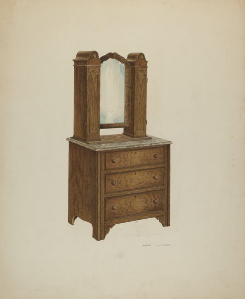 Joseph Cannella made this drawing of a shaving stand sometime in the 20th century, though, honestly, it could be earlier. What strikes me is the patient, almost obsessive quality of the mark-making. It’s like each line is laid down with careful consideration, building up the form slowly, tenderly. The color palette is muted—earthy browns and tans—but there's a subtle vibrancy in the way Cannella uses the medium. It’s like he’s trying to capture not just the appearance of the shaving stand but also its essence, its weight and presence in the world. I really appreciate the little curtains reflected in the mirror. They are rendered so simply but they speak to the intimacy and domesticity of everyday life. This piece reminds me a little of the work of Bill Traylor, another self-taught artist who found beauty and meaning in the objects and scenes of his immediate surroundings. They both embrace the idea that art is really an ongoing conversation, a way of seeing and making sense of the world around us.