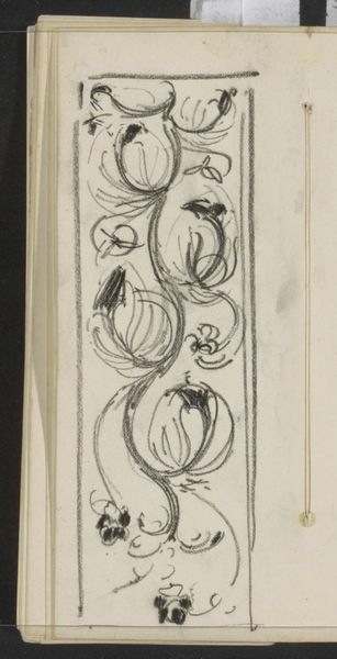 Gerrit Willem Dijsselhof made this sketch of a floral motif and scrollwork with graphite on paper. What strikes me most about this piece is the economy of line, a kind of visual shorthand that suggests form without fully defining it. It’s all about the process of discovery, feeling his way through the design. Dijsselhof uses a simple graphite stick to build up this image, and you can see the texture of the paper coming through. The marks are tentative yet confident, as if he’s thinking aloud on the page. Look at the way he renders the scrolls, how each curve varies in thickness and intensity. He is playing with a balance between control and spontaneity, a dance between intention and accident. This piece reminds me of some of the early sketches by Gustav Klimt, where he's exploring similar motifs with a comparable sense of freedom and experimentation. Art isn't about nailing down a single meaning; it's about embracing the ambiguity and letting the conversation unfold.