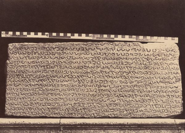 Curator: This intriguing piece is a Qur'anic writing board, dating back to around the mid-20th century. It's currently held here at the Minneapolis Institute of Art. Editor: It looks incredibly tactile. The aged wood and dense script give it such a weighty, solemn presence, doesn't it? Curator: Absolutely. And consider the material transformation. Raw wood, carefully selected and prepared, becomes a surface for learning and religious practice. We see a convergence of nature, labor, and spirituality. Editor: The ink calligraphy dominates the form. Look at the rhythmic repetition of the letters; it creates a complex, almost mesmerizing visual texture. Notice, also, the square grid disrupting the otherwise continuous flow of the text. Curator: The grid is interesting. Beyond the formal break, could it point to the pedagogical system at play? Think of the countless hours of labor embodied in the student practicing their script, guided by an instructor and religious norms. The writing board serves as both a means of instruction and an instrument of cultural production. Editor: The interplay between precision and slight imperfection enhances its character. The way the ink bleeds slightly into the grain of the wood and the little damages create a sense of authentic human interaction. Curator: I agree. The medium carries significance itself. Wood was a readily available and affordable material, indicative of a specific time and place, directly relating to issues of class and access. The labor that went into procuring and shaping that wood becomes a vital part of the object’s history. Editor: Ultimately, this is an object that resonates far beyond its textual content through materiality, composition, and symbolic language. Curator: Indeed. This seemingly simple wooden board provides a window into the intertwining spheres of religion, education, and craftsmanship in a specific social setting.