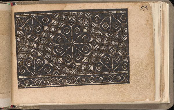 This page from Sigismundus Latomus’s Schön newes Modelbuch, created in the early 17th century, showcases a striking pattern achieved through the process of woodcut printing. The design features a lattice of diamond shapes, each meticulously filled with smaller geometric motifs. The stark contrast between the black ink and the paper creates a bold visual impact, characteristic of early printmaking. The evenness of the lines speaks to the skill involved in carving the woodblock and the control required to produce consistent impressions. Books like this played a vital role in the transmission of design ideas. They provided patterns for embroiderers, lacemakers, and other artisans, influencing the look of textiles and decorative arts across Europe. The book stands as a testament to the democratizing power of print, making intricate designs accessible to a wide audience. By focusing on the materials, techniques, and social function of this Modelbuch, we can appreciate how craft and design were intertwined with artistic innovation in the early modern period.