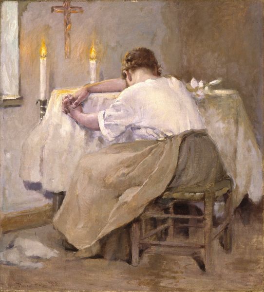 Joseph DeCamp's "The Seamstress," painted around 1916, presents us with an image of domesticity bathed in light, where a woman is diligently sewing. The act of sewing itself, seemingly mundane, is rich with symbolism. Consider the Fates of ancient Greek mythology, weaving the threads of destiny, or Philomela, who wove a tapestry to tell the story of her abuse. In both cases, weaving or sewing is linked to fate and storytelling. In the Renaissance, images of women sewing often symbolized virtue and domesticity, but also skill and intellect. Here, the seamstress is framed by a window, her world seemingly confined, but her mind perhaps wandering beyond those boundaries. This arrangement creates an emotional tension between confinement and freedom, echoing through the ages. This humble act connects us to the timeless themes of creation, storytelling, and the human condition. These are potent archetypes that continue to resonate.