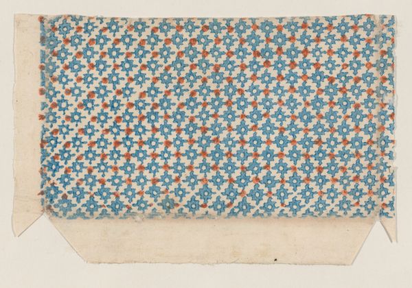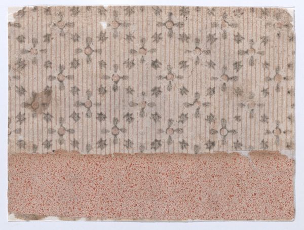 This sheet with an overall grid pattern was made anonymously, using what appears to be a simple printmaking process. The image is composed of rows of small squares and stars in a faded palette of grey, brown, and mauve, printed onto thin paper. The regularity of the pattern suggests the use of a carved block or stencil. The texture of the print is uneven, and the colors bleed, giving the sheet a worn, handmade feel. It’s the kind of pattern you might find repeated on a wallpaper or textile. Given the small scale, and the relative simplicity of the pattern, perhaps this was a sample, created to show potential clients what could be achieved. Without knowing the date or intended use, we can only guess at the social context in which this object was made. But its existence reminds us that even the most functional or decorative objects are the result of human labor, skill, and ingenuity. This challenges traditional distinctions between art and craft, inviting us to appreciate the artistry inherent in everyday design.