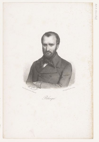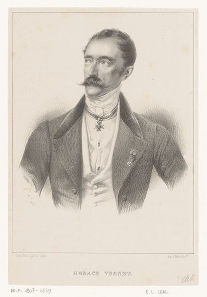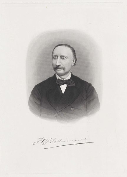 Adrianus Johannes Ehnle rendered this portrait of Johannes Bosboom in graphite, achieving a delicate balance between line and shadow. The composition is deceptively simple; Bosboom is positioned off-center, his gaze directed slightly to the right. This asymmetry introduces a subtle tension, preventing the portrait from becoming static. The artist's careful use of hatching and stippling creates a range of tonal values, adding depth to Bosboom's features and clothing. Note how the light catches the planes of his face, accentuating his brow and cheekbones. Here, we observe a visual negotiation between presence and absence; the artist uses the bare paper as a compositional element. This interplay suggests a semiotic relationship between figure and ground, challenging fixed meanings and inviting viewers to question traditional portrait conventions.