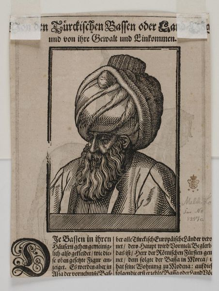 Melchior Lorck created this diminutive woodcut, "Bust of bearded man wearing a turban," in the 16th century. The visual field is dominated by a tightly framed, three-quarter profile of a man, notable for the intricate detail of his substantial turban. Lorck's mastery is evident in the meticulous arrangement of lines that define form and texture. Notice how the parallel hatchings create a play of light and shadow, giving volume to the turban and depth to the man's features. This technique invites us to consider the underlying structure of representation itself—how simple lines can construct complex forms and convey nuanced expressions. The print engages with the semiotic codes of the time, presenting a figure marked as 'other' through his dress. Yet, by rendering him with such attention to detail, Lorck complicates this representation. He invites us to question fixed notions of identity and representation. Consider how this small, carefully constructed image participates in a broader discourse about cultural representation and the power of visual language to shape understanding.