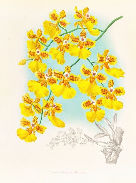 Jean Jules Linden made this print of Oncidium sarcodes sometime in the 19th century. It captures a vibrant orchid, embodying the Victorian era's fascination with natural history and botanical illustration. But this was a science steeped in Empire. Consider the orchid itself. Its exotic appeal fuelled the emerging global trade in rare specimens. European explorers and botanists, often backed by colonial powers, ventured into distant lands, including South America where Linden himself travelled, to collect and classify new species. These specimens then found their way into private collections and botanical gardens, displays of wealth and scientific prowess. Linden's detailed rendering reflects a desire to understand and categorize the natural world through observation and documentation, while also reflecting and reinforcing imperial power structures of the 19th century. To fully appreciate this print, one might delve into the archives of botanical societies, colonial records, and the personal accounts of explorers. Through such historical inquiry, we can better understand the complex interplay between art, science, and society.