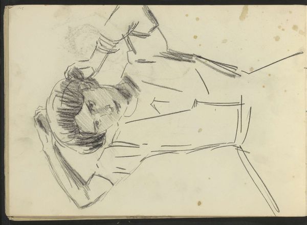 Editor: So, here we have Rothko's ink and pen drawing, "Figure Facing Right". It’s a quick sketch, almost like a study. What stands out to me is the raw, almost anxious energy in the line work. What's your take on it? Curator: Looking at this work through a materialist lens, the simplicity of the pen and ink are really striking. This isn’t about high art refinement. It’s about the directness of the artistic process, a utilitarian approach to representing form. Editor: I see what you mean, almost like he’s capturing an immediate impression, not crafting a polished artwork. How does that inform its meaning? Curator: Consider the societal context of artistic production. The choice of such humble materials, pen and ink, removes the barrier of cost and training. Rothko can explore the human figure, not necessarily to create a beautiful object for wealthy patrons, but to simply investigate the form. This accessibility questions traditional hierarchies between “high art” and everyday life. Editor: So, it’s less about the subject, and more about the act of drawing itself as a process, a type of labor? Curator: Precisely! The seemingly hasty lines, the visible marks of the pen – they draw attention to the artist’s hand, their labour. Also, note the stains on the page – these physical traces become part of the work. It invites a different appreciation, where the creation of the work takes precedence over the mere illustration. Editor: That really changes how I see it! It becomes less about who the figure *is*, and more about the work needed to capture even a fleeting version of a figure. I never considered how important the raw materials can be. Curator: It reframes our engagement; it shifts from aesthetic appreciation toward valuing art's function.