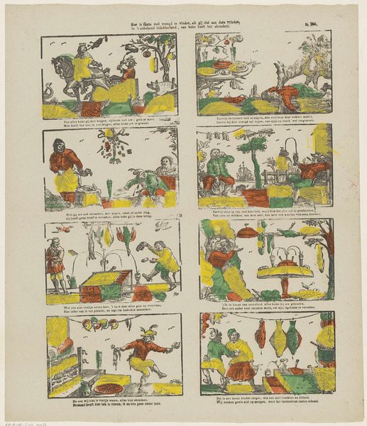 This print, “Hier is thans veel vreugd te vinden,” by Glenisson & Van Genechten, is a hand-colored etching, a process involving both skill and labor. The crisp lines suggest a metal plate carefully etched with acid to create the design, then likely printed in multiples before being finished with watercolor washes. The depicted world of Cockaigne, or “Luilekkerland”, literally “lazytown”, is filled with readily available food and drink – labor is conspicuously absent. The print is not just an image, but also a social commentary. The labor of the artist stands in stark contrast to the imagined world of leisure. Consider the skilled labor involved in producing this print, and its distribution in early modern society. It invites us to reflect on the amount of work involved in its production process. By understanding its material, making, and context, we begin to see how the print blurs the lines between fine art, craft, and social critique.