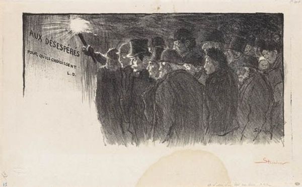 Curator: This is Honoré Daumier's lithograph, dating from the 19th century, entitled "Le spectacle est une chose bonne pour le peuple de Paris..." which translates to "The spectacle is a good thing for the people of Paris...". Editor: My immediate impression is of dense atmosphere—a crowd presses together, everyone craning their necks towards some unseen focal point of interest, implied to be "the spectacle". The starkness of the lithographic lines amplifies the feeling of being enclosed. I wonder about the quality of the paper? Curator: Lithography was revolutionary because of how reproducible images became and their effect on mass culture. The artist could make a work for the "people of Paris". Notice how the elevated child becomes almost a symbol of striving and yearning. Are we meant to see innocence or an acknowledgement of shared hope for something better through this "spectacle"? Editor: The materiality definitely speaks to Daumier’s project of accessibility and social critique. Lithography allowed for mass production, democratizing art, and spreading satirical commentary far and wide. The very grain of the stone from which this image was made gives it a weight that goes beyond its topical subject, almost making it feel gritty. I’m also struck by the body of the worker whose shoulder provides that elevation to the boy and a better view. His turned neck and concentration represent the everyday material struggle to reach that goal: entertainment for himself and the little one. Curator: Exactly. The choice of lithography itself amplifies Daumier's message. The symbolic significance, in its historical context, touches upon collective experiences during a rapidly industrializing era in France, the yearning of common people in urbanized environments looking for distraction and unity through the "spectacle." And he used these same qualities for political agitation. Editor: Yes, there's that dual edge – both celebrating the communal experience while subtly pointing out its constructed nature and the social realities underlying it. Even something so supposedly detached, like entertainment, reveals those tensions. I notice, also, the crowd includes different social layers as reflected by different styles of hat and dress. Curator: And perhaps it's also pointing to a hierarchy of viewing, quite literally, someone getting a boost. I agree—a reminder that shared experiences are inevitably filtered through individual circumstances. I am convinced that the lasting power comes from reflecting universal truths about hope, resilience, and the dynamics within society. Editor: For me, that lies in understanding Daumier's ingenious choice of lithography to reveal these dynamics, how a common material process helped define what it means for something to even *become* "spectacle."