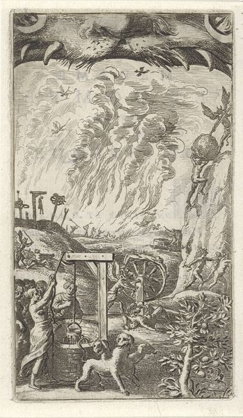 Editor: So, here we have "Christ Asleep During the Storm on the Sea" by Boëtius Adamsz. Bolswert, made sometime between 1590 and 1622. It's an engraving, quite dramatic! The detail is incredible for its size, but the chaos of the scene is what really grabs me. What do you see in this piece? Curator: Ah, chaos and calm interwoven! I feel the drama you speak of; the boat tossed by monstrous waves, the disciples wrestling with the storm… But my eye is drawn to the placid figure of Christ, asleep in the midst of it all. Doesn't that juxtaposition just shout of faith, of inner peace amidst the tempest of life? It's a powerful, almost theatrical rendering of the biblical story, wouldn't you say? It begs the question, doesn’t it: where do *we* find our calm when the waves crash? Editor: I guess I was so caught up in the action that I missed the stillness in Christ. Thinking about the "where do *we* find our calm" bit...maybe the crowd is on land to reach that stillness? Curator: Possibly... Maybe Bolswert subtly used that distant gathering on land, rendered in miniature, to symbolize humanity reaching towards solace? I find this piece endlessly evocative of humanity’s continuous strife for balance against opposing forces...both external and within ourselves. Thank you for highlighting your 'chaos and calm' reading... Editor: Definitely gives me a lot to consider, thanks.