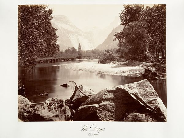 Carleton Watkins created this photograph, "The Domes, Yosemite", capturing the sublime landscape with a particular emphasis on reflection. The still water mirrors the monumental domes, a motif laden with meaning. Consider the dome, an architectural symbol echoing throughout history from the Pantheon to the Florence Cathedral. It represents the cosmos, divinity, and shelter, a universal yearning for protection and understanding. In Watkins' photograph, this shape is mirrored, doubled, suggesting a profound connection between the earthly and the ethereal, reality and its reflection. This duality evokes the ancient concept of the "axis mundi," a point connecting heaven and earth, a bridge between conscious and subconscious realms. Reflections have appeared in art across the ages – Narcissus gazing into his pool, or the mirror in Van Eyck’s "Arnolfini Portrait." Here in Yosemite, the natural reflection invites a contemplation of mortality and eternity, urging us to recognize our place within the grand, cyclical unfolding of time.